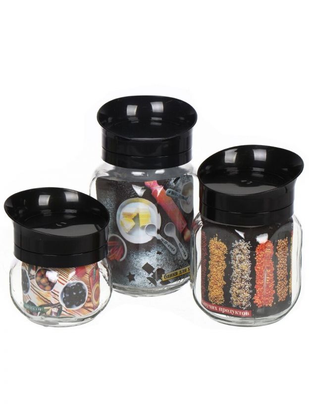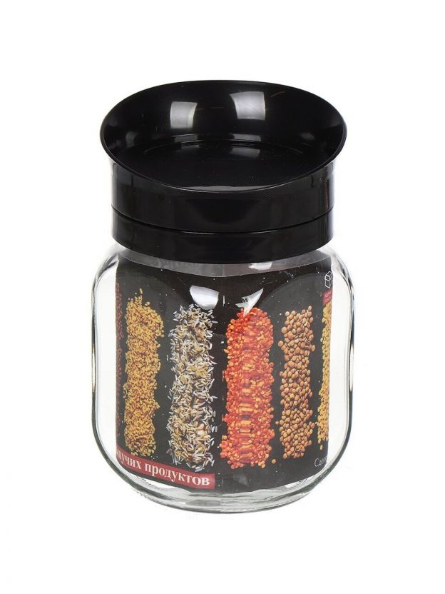Банка для сыпучих продуктов, стекло, 0.65 л, с пластиковой крышкой-дозатором, 00875-00001, черная