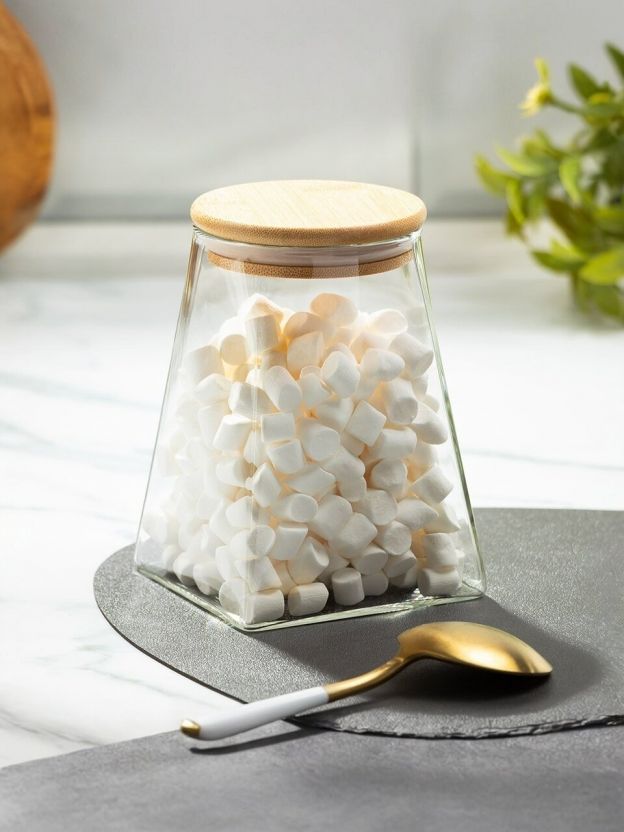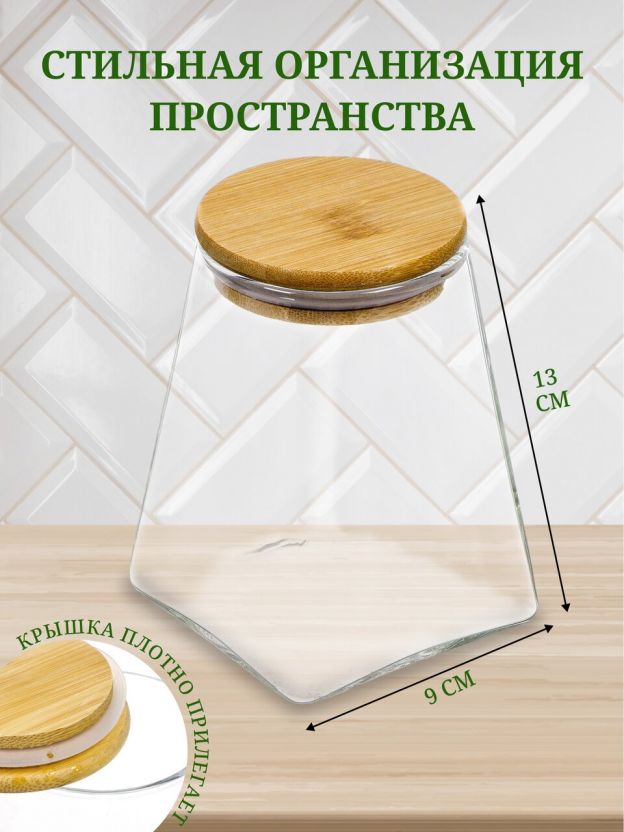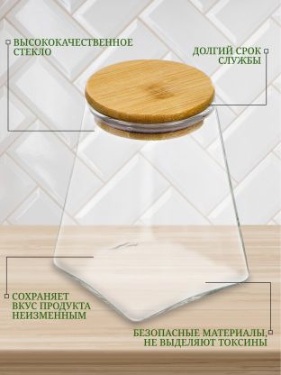 Часто спрашивают: «Как выбрать банку для сыпучих продуктов?» и «Подходит ли такая банка для хранения муки, чая или кофе?». В отличие от пластиковых контейнеров, стеклянная банка не впитывает запахи и полностью прозрачна — вы всегда видите остаток содержимого. Герметичная крышка из бамбука обеспечивает плотное закрытие, а отсутствие ложки в комплекте позволяет использовать любимый кухонный инвентарь.