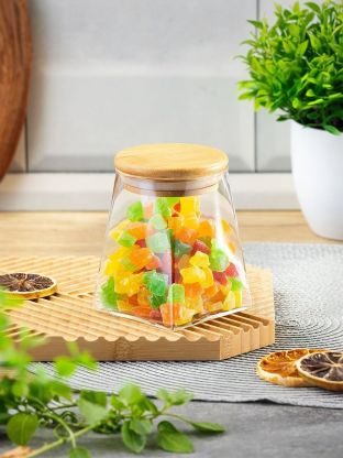 Банка для сыпучих продуктов из стекла 350 мл с крышкой Y4-4786 — это универсальное решение для хранения сахара, соли, чая, специй и других продуктов. Прозрачное стекло позволяет сразу видеть содержимое, а герметичная крышка из бамбука предотвращает попадание влаги и запахов. Благодаря гладкой текстуре и фигурной форме, банка легко моется, в том числе в посудомоечной машине, и не впитывает запахи.