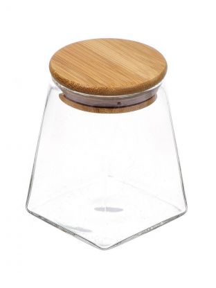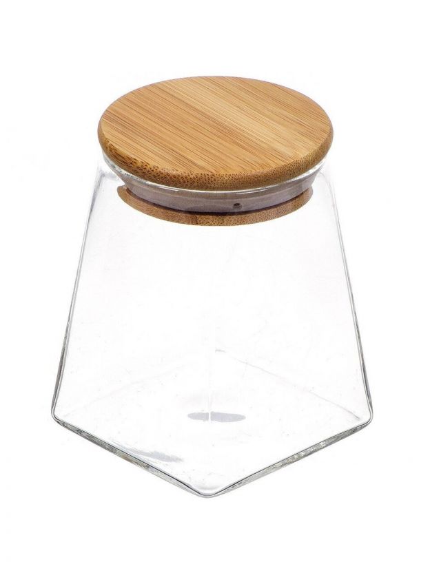 Банка для сыпучих продуктов из стекла 350 мл с герметичной бамбуковой крышкой — компактное хранение круп и специй без запахов и просыпаний. Идеально для кухни, дачи и подарка.