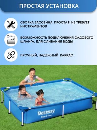 Выбирая бассейн Bestway Steel Pro, вы получаете не только качественный продукт, но и надежное решение для создания комфортной зоны отдыха на свежем воздухе. Это выгодное вложение в летние развлечения, которое подарит множество радостных моментов и впечатлений. Наслаждайтесь теплым временем года, купаясь в собственном бассейне, и создавайте незабываемые воспоминания с близкими!