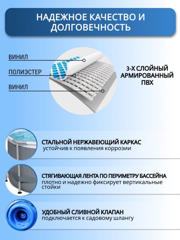 Выбирая бассейн Bestway Power Steel Oval Pool, вы получаете не только качественный и надежный продукт, но и возможность создать на своем участке уголок для отдыха и развлечений. Бассейн не только украсит ваш сад, но и станет центром притяжения для всей семьи и друзей. Наслаждайтесь освежающим купанием в жаркие дни и забудьте о поездках на переполненные пляжи. Это идеальное решение для тех, кто ценит комфорт и качество. Рекомендуется разбирать бассейн на холодное время года для продления срока службы.