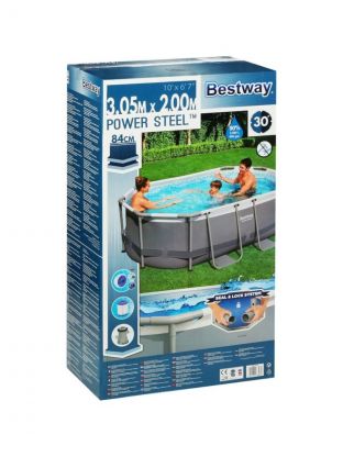 Бассейн каркасный Bestway, 305х200х84 см, Power Steel Oval Pool, 5614A, фильтр-насос, 3668 л, поплавок-дозатор