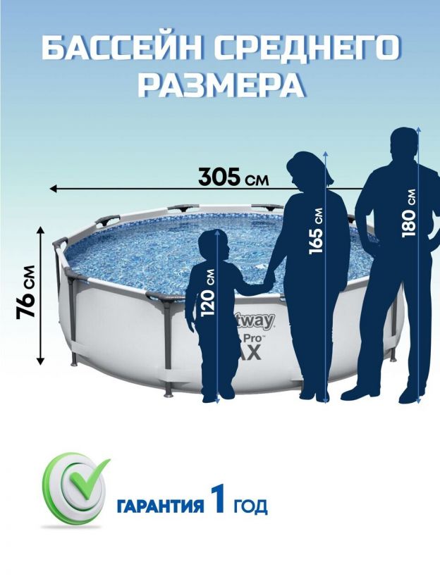 Бассейн каркасный Bestway, 305х76 см, Steel Pro Max, 56408, фильтр-насос, 4678 л