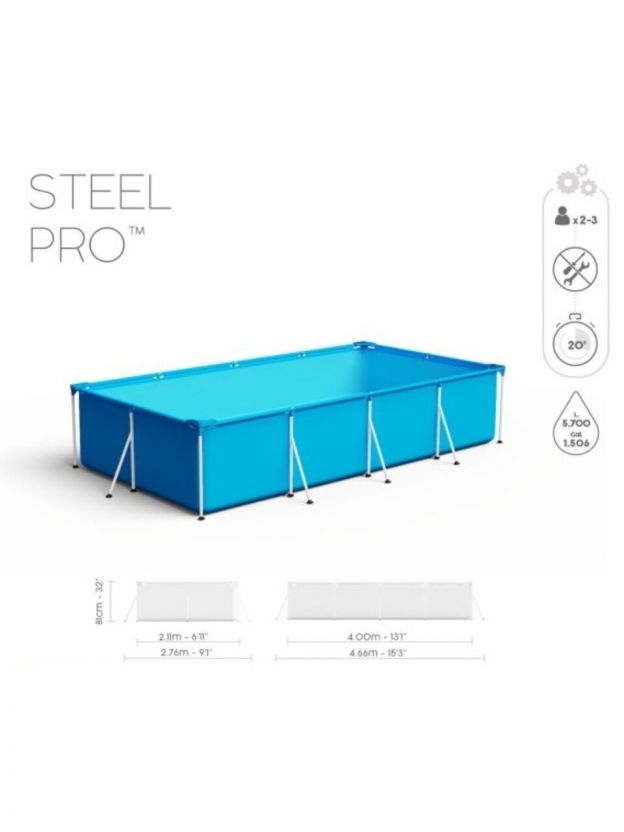 Бассейн каркасный Bestway, 400х211х81 см, Steel Pro, 56424, фильтр-насос, 5700 л