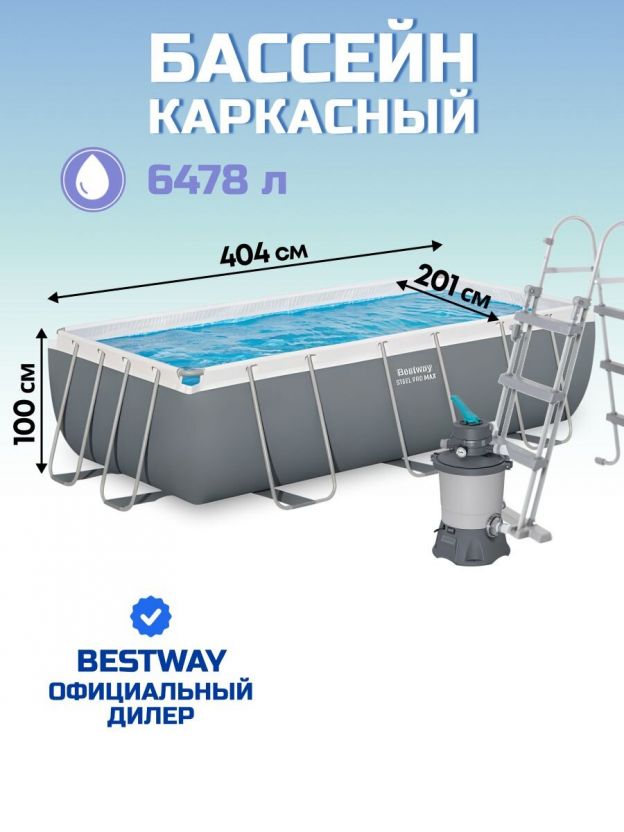 Бассейн каркасный Bestway, 404х201х100 см, Power Steel, 56442, фильтр-насос, лестница, 6478 л, ремкомплект