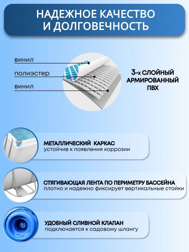 Покупка этого каркасного бассейна — это не только инвестиция в качество отдыха, но и возможность создать уютный уголок для веселья и расслабления. Объем 6478 литров позволяет наслаждаться освежающими купаниями в жаркие дни, а наличие фильтр-насоса поддерживает воду в чистоте. Bestway Power Steel — это надежность и комфорт, которые вы заслуживаете.
