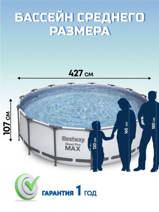 Бассейн каркасный Bestway, 427х107 см, Steel Pro Max, 56950BW, фильтр-насос, лестница, тент, 13030 л
