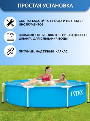 Ищете идеальное решение для летнего отдыха на даче? Каркасный бассейн Intex 244х51 см, модель Metal Frame, станет отличным выбором для тех, кто ценит комфорт и простоту. Этот бассейн обеспечивает освежающее удовольствие в жаркие дни и подходит для всей семьи. Установите его на даче и наслаждайтесь прекрасными моментами у воды.