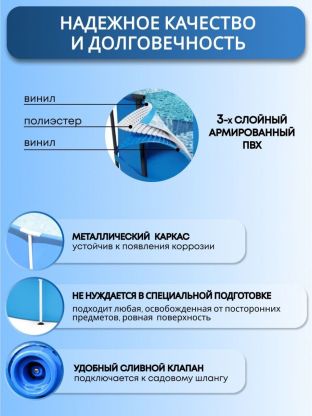 Синий цвет бассейна идеально вписывается в любой садовый или дачный интерьер, создавая атмосферу уюта и комфорта. Бренд Intex известен своим качеством и надежностью, что делает этот каркасный бассейн отличным выбором для всей семьи. Сделайте шаг навстречу летнему отдыху и подарите себе и своим близким незабываемые моменты на свежем воздухе!