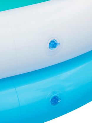 Бассейн надувной Bestway «Акула» — выбор родителей, которые ищут безопасный и интересный детский бассейн для дачи или дома. Благодаря компактным размерам (163х127 см), его легко разместить даже на небольшой площадке. Прочный материал ПВХ устойчив к проколам, а в комплекте предусмотрена заплатка для ремонта. Три воздушные камеры и два кольца одинакового размера обеспечивают устойчивость и комфорт для малышей от 2 лет.