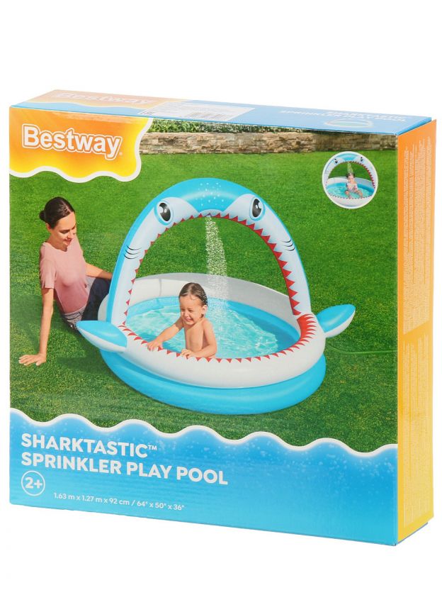 Бассейн надувной Bestway «Акула» 163х127х92 см — яркое летнее развлечение для детей от 2 лет с фонтаном и прочным ПВХ, быстрое решение для дачи и дома.