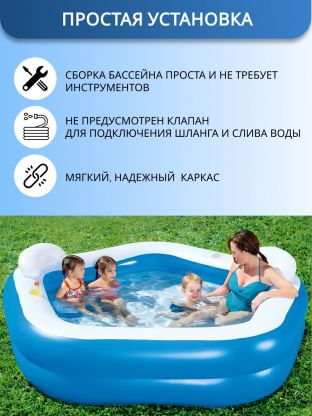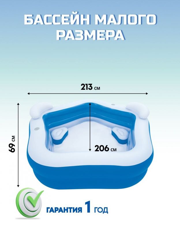 Бассейн надувной Bestway, 213х206х69 см, 54153, 575 л, с сиденьями и подголовниками