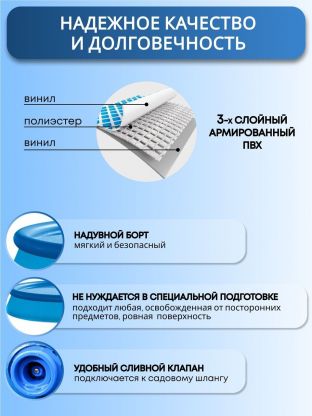 - долговечность: изготовлен из прочного трехслойного ПВХ.