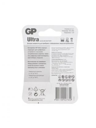 Батарейка GP, ААА (LR03, 24A), 24AUA21-2CRSBC4, щелочная, блистер, 4 шт, 1233