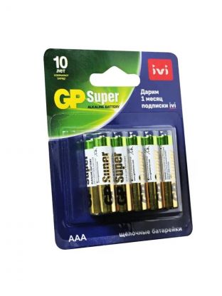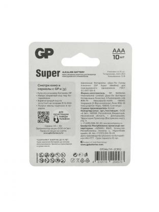 Батарейка GP, ААА (LR03, 24A), Alkaline Super, щелочная, блистер, 10 шт, 17414