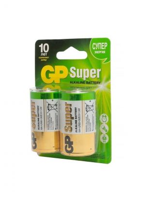 Батарейка GP, D (LR20), Alkaline Super, щелочная, блистер, 2 шт, 02655