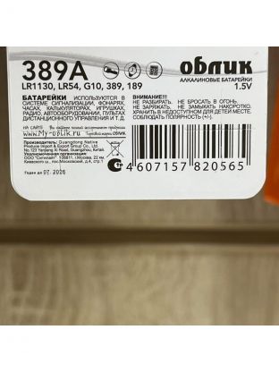 Батарейка Облик, LR1130 (389A, AG10), Alkaline, щелочная, 1.5 В, блистер, 10 шт