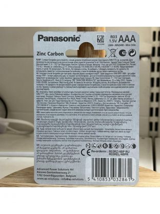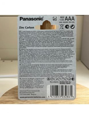 Батарейка Panasonic, ААА (R03, 24D), Zinc-carbon, солевая, 1.5 В, блистер, 4 шт