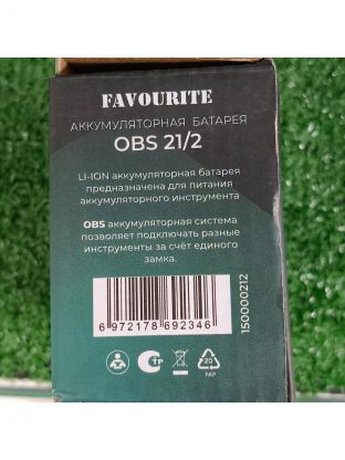 Батарея аккумуляторная 2000 мА·ч, Li-Ion, 21 В, Favourite, OBS 21/2, 150000212