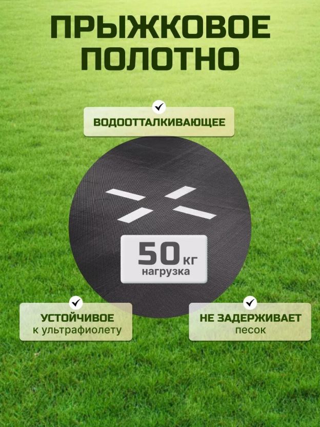 Прыжковое полотно — это основной элемент батута. Материал прыжкового полотна из устойчивой к УФ сетчатой полипропиленовой ткани. Полипропиленовая ткань - многофункциональный материал, изготавливающийся из полипропиленовой нити. Основной особенностью полипропиленовой ткани является высокая устойчивость к истиранию, температурным перепадам, а также воздействию окислителей, щелочей и кислот.