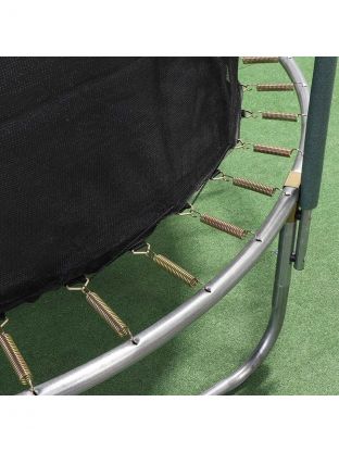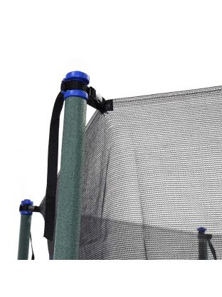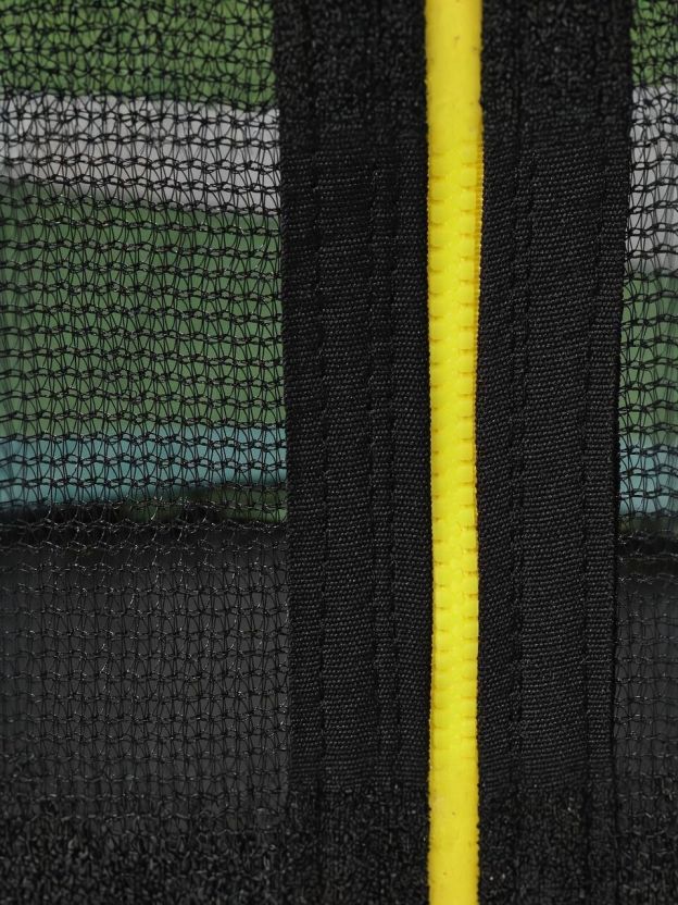 Защитная сеть входит в обязательную комплектацию батутов. Сетка батута устойчива к УФ-излучению полиэтиленовая сетка. Инновационное крепление увеличивает рабочее пространство батута, исключает соприкосновение с пружинным механизмом, все элементы крепления закрыты мягким матом или выполнены из безопасных материалов. Вход на усиленной молнии, оборудован дополнительными фиксаторами, защищен от случайного открывания.