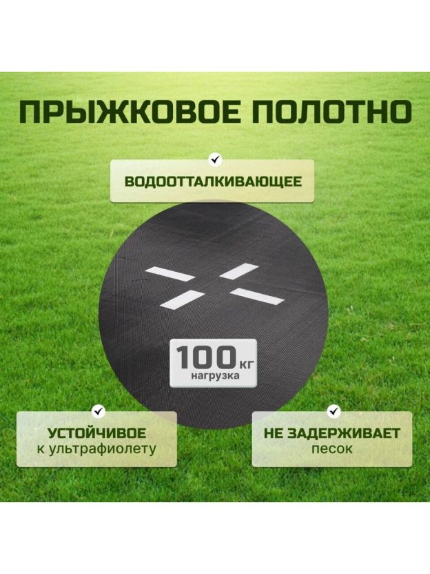 Прыжковое полотно — это основной элемент батута. Материал прыжкового полотна из устойчивой к УФ сетчатой полипропиленовой ткани. Полипропиленовая ткань - многофункциональный материал, изготавливающийся из полипропиленовой нити. Основной особенностью полипропиленовой ткани является высокая устойчивость к истиранию, температурным перепадам, а также воздействию окислителей, щелочей и кислот.