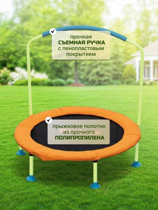 • Компактные размеры: батут легко разместится на любом участке, не занимая много места.