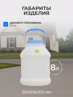 • Объем: 8 л (указан до горла).