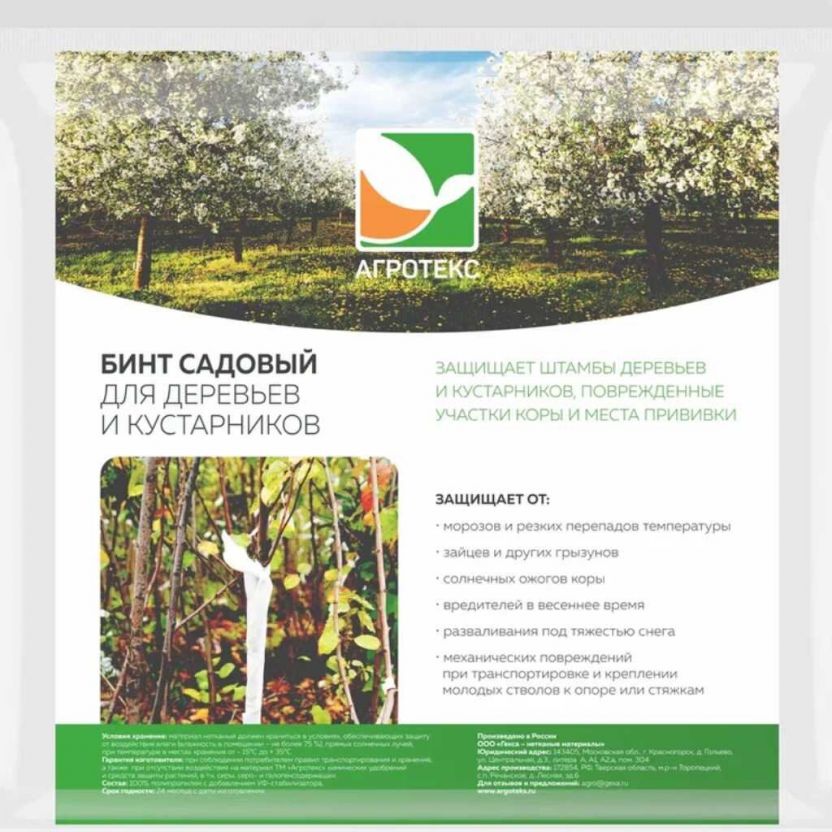 Бинт садовый применяется для защиты штамбов деревьев и кустарников, поврежденных участков коры и мест прививки.