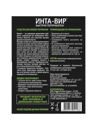 Биоактиватор Инта-вир позволяет быстро получить качественный компост, улучшая плодородие почвы и сокращая количество отходов. Выгода: экономия времени, сил и получение экологически чистого удобрения для участка.