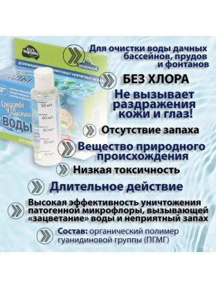 - органический полимер гуанидиновой группы (ПГМГ) – вещество природного происхождения, участвующее в процессах естественной очистки и обеззараживания природных вод;