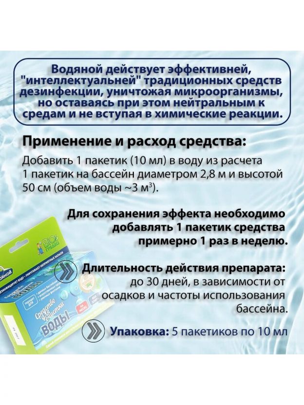 Покупая "Водяной", вы получаете не просто средство для очистки воды, а уверенность в том, что ваш водоем будет радовать вас и ваших близких своей чистотой и безопасностью. Это идеальное решение для тех, кто ценит комфорт и заботится о здоровье своих близких.