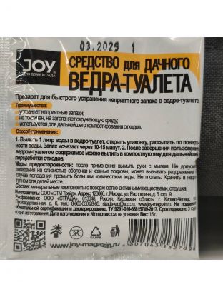 Биосостав для дачного ведра-туалета, Joy, 15 г