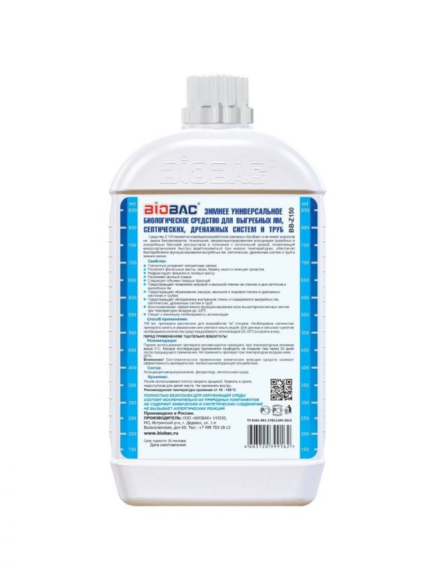 Быстрое решение для зимней очистки выгребных ям и септиков — биосостав Биобак 1л: эффективная переработка отходов даже при минусовых температурах, без запаха и хлопот.