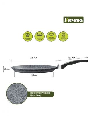 Откройте для себя идеальный инструмент для приготовления аппетитных блинов и других блюд - алюминиевая блинница диаметром 22 см с мраморным антипригарным покрытием от бренда "Мечта". Эта модель Premium grey станет незаменимым помощником на кухне благодаря своим уникальным характеристикам и современному дизайну.