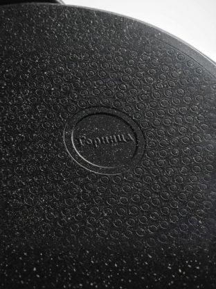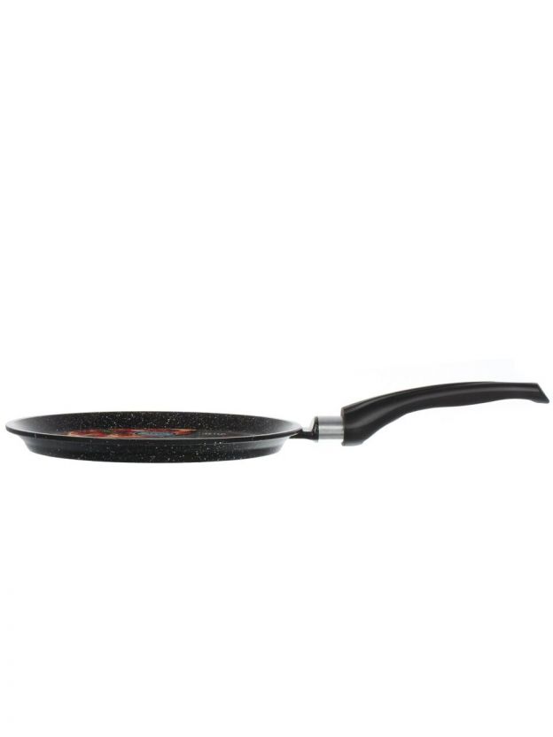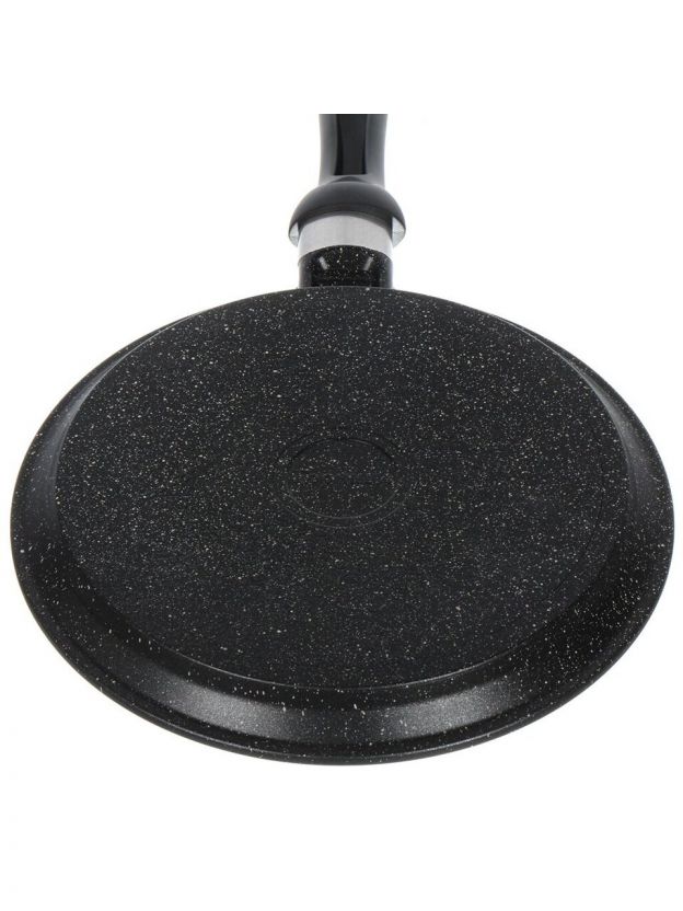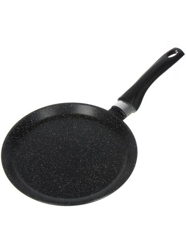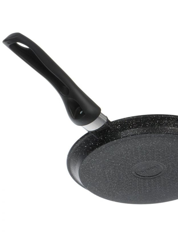 Блинная сковорода с антипригарным покрытием – литая алюминиевая посуда, которая подходит для газовых, электрических и стеклокерамических плит. При минимальном использовании масла получаются тонкие блины и пышные оладьи. «Гранит». Коллекция «мраморной посуды» с улучшенным четырёхслойным антипригарным покрытием. Дополнительный слой с мраморным эффектом увеличивает износостойкость и создаёт оригинальный оттенок чёрного мрамора.
