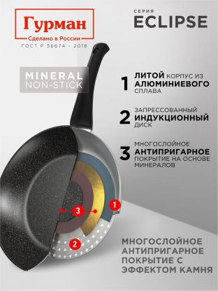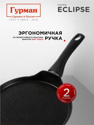 Блинница алюминий, 24 см, антипригарное покрытие, Гурман, Eclipse, ГМб241ЭКИ, пластиковая ручка, индукция