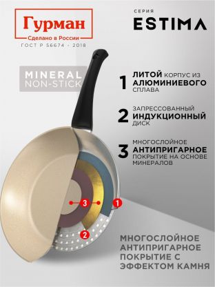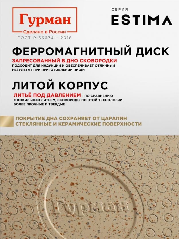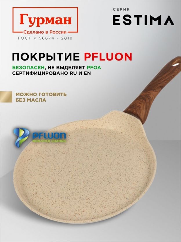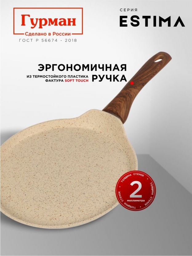 Блинница алюминий, 24 см, антипригарное покрытие, Гурман, Estima, бежевая, ГМб241ЭБИмп, пластиковая ручка, МП, индукция