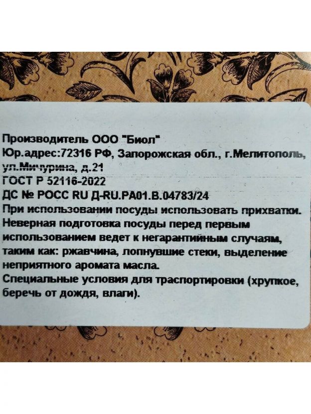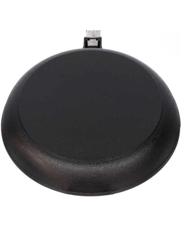 Диаметр рабочей поверхности — 22 см, толщина дна — 2.9 мм. Это оптимально для равномерного прогрева и приготовления тонких блинов.
