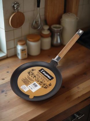 Блинница из чугуна Гардарика диаметром 22 см — это выбор тех, кто ценит натуральные материалы и долговечность. Благодаря отсутствию искусственного антипригарного покрытия, поверхность со временем приобретает естественные антипригарные свойства. Съемная ручка из дерева не нагревается и облегчает хранение или использование блинницы в духовке. Если вы ищете, какую блинницу выбрать для индукционной плиты или чем отличается чугунная сковорода от алюминиевой, обратите внимание: чугун сохраняет тепло дольше, равномерно пропекает блины и подходит для всех видов плит, включая индукцию и открытый огонь.