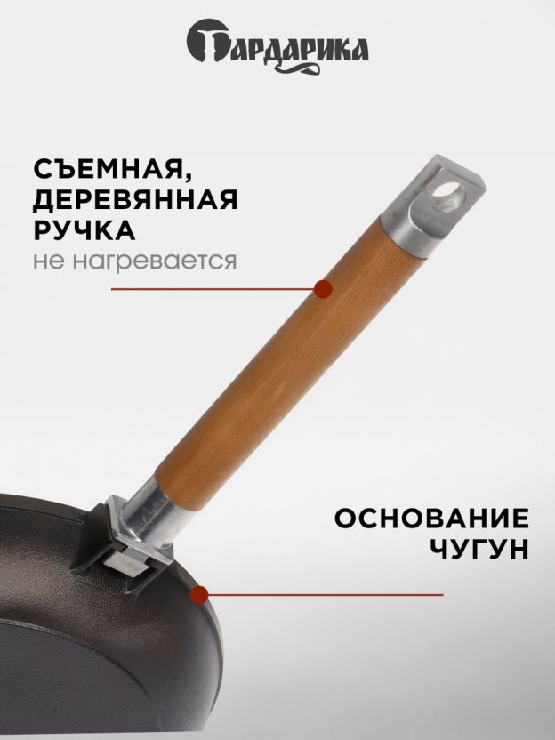 Блинница чугун, 22 см, Гардарика, 0822, съемная ручка, деревянная ручка, индукция