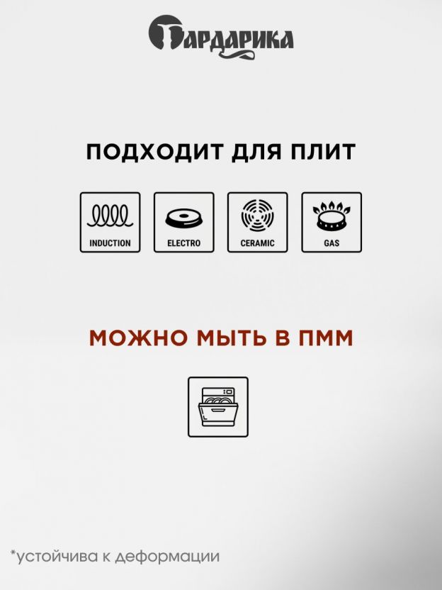 Да, чугунная блинница Гардарика подходит для индукционных, газовых, электрических, стеклокерамических плит, галогеновых конфорок, открытого огня и духовки. Съемная ручка облегчает использование в духовке.