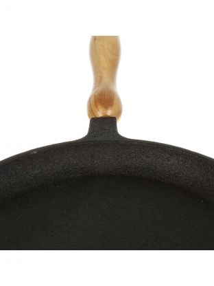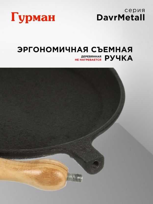 Блинница чугун, 22 см, Гурман, DavrMetall, съемная ручка, деревянная ручка, индукция