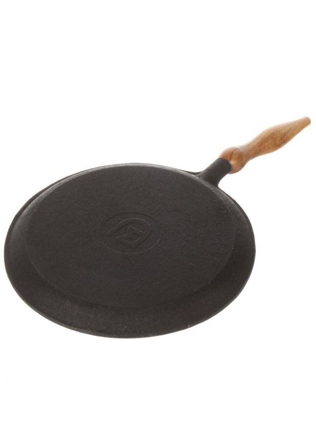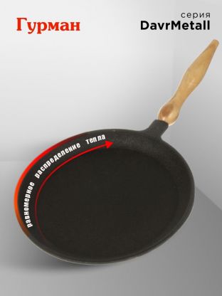 Блинница чугун, 24 см, Гурман, DavrMetall, съемная ручка, деревянная ручка, индукция