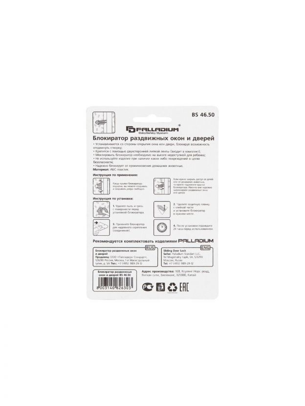 Блокиратор Palladium, BS 46.50, для раздвижных окон и дверей, 111651