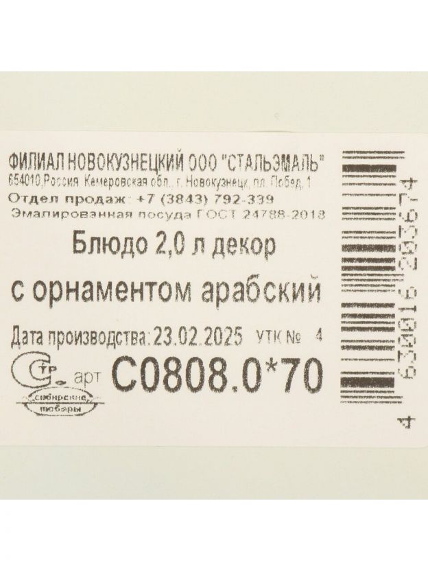 Блюдо эмалированная сталь, 3.5х35.5 см, 2 л, Арабский, Сибирские товары, С0808.0*70