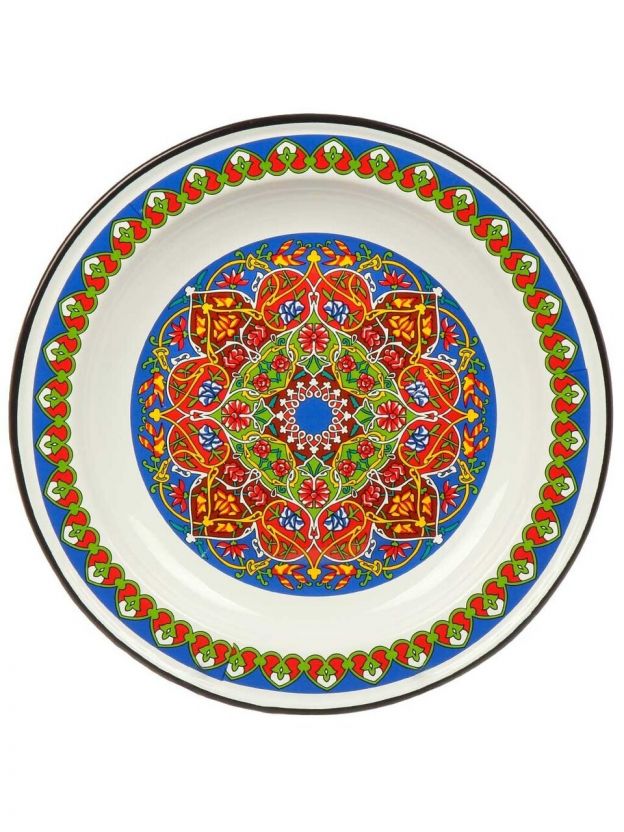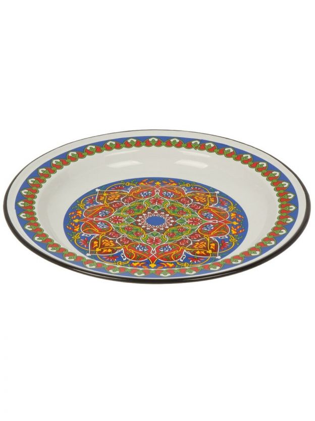 Как выбрать блюдо для сервировки? Эмалированная сталь — это надежность и простота ухода: блюдо легко мыть в посудомоечной машине, оно не боится перепадов температур и не ржавеет. Благодаря яркому рисунку и универсальной форме, «Арабский» отлично смотрится на любом столе, подходит для подачи фруктов, закусок, блинов, а также для хранения продуктов.