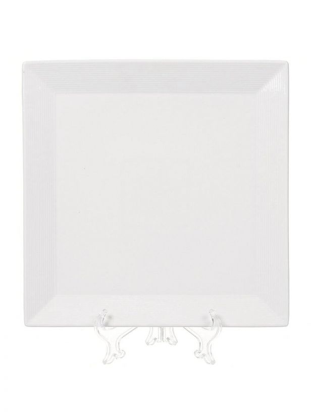 Блюдо квадратное, диаметр 25 см, выполнено из прочной белой керамики, без рисунка, с бортиками, подходит для микроволновки.