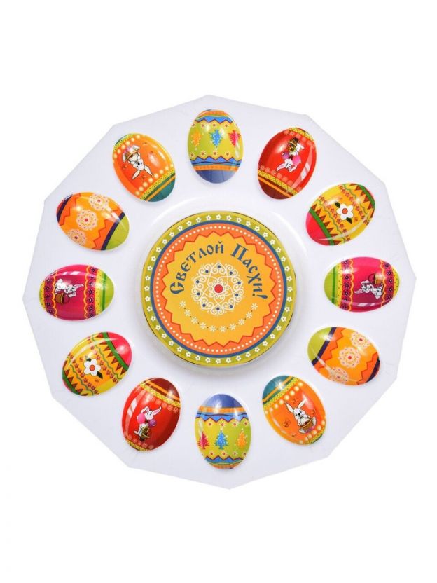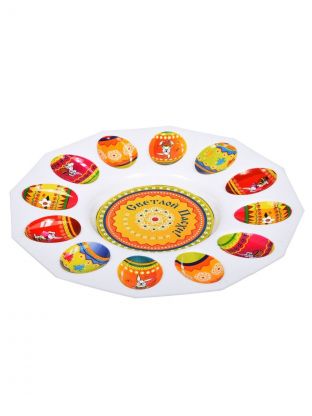 Блюдо пластик, для яиц, круглое, 25 см, мультиколор, Пасхальное, Marmiton, 17076